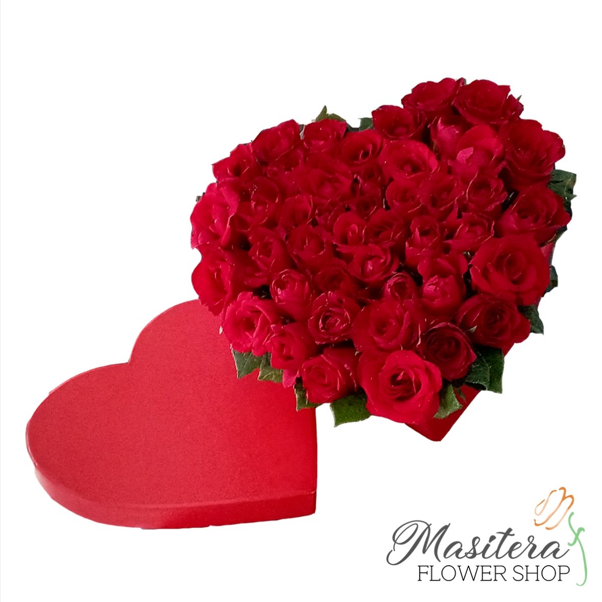 Imported red roses in a box.