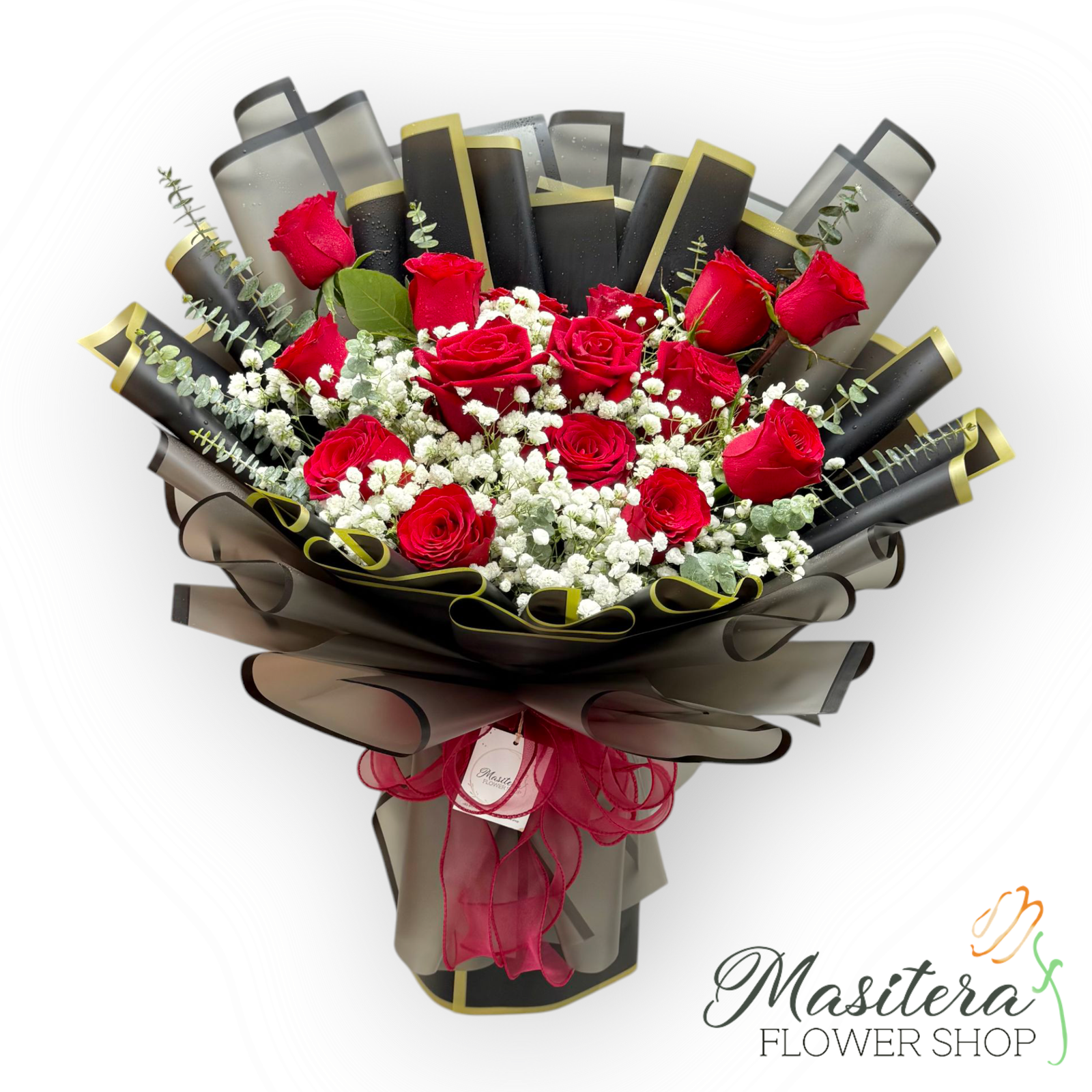 Imported red roses bouquet.